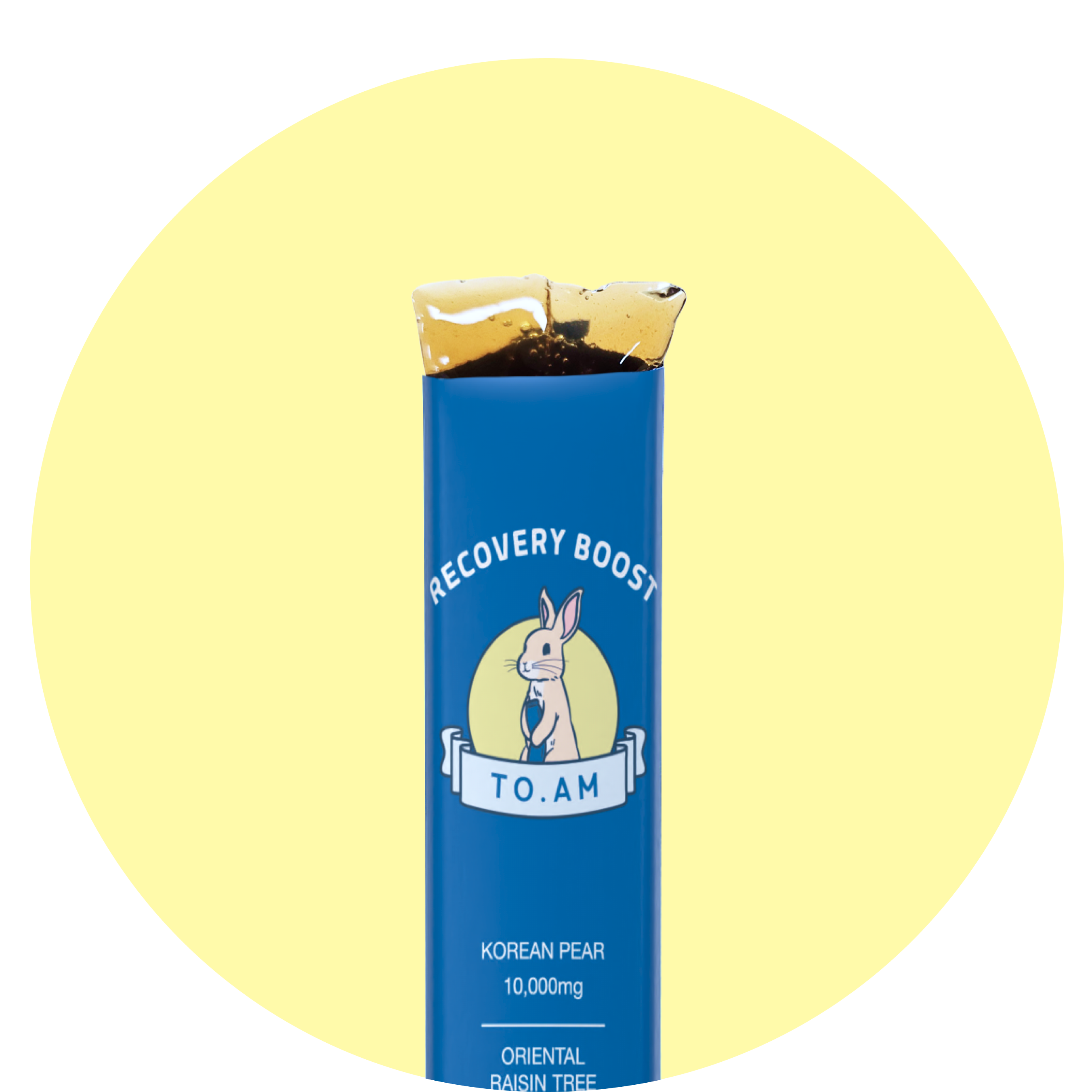 TO. AM’s Recovery Boost supports your body before and after drinking by combining Korean pear, Oriental Raisin Tree(DHM), and other functional ingredients to help break down alcohol and ease hangover symptoms.